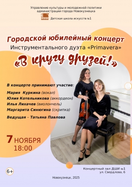 Городской юбилейный концерт инструментального дуэта «Primavera» "В кругу друзей!"